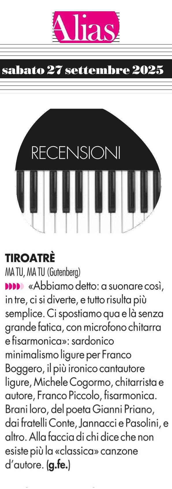 Recensione Alias/Manifesto del 27 settembre 2025>>> click!